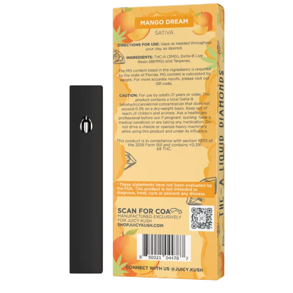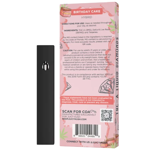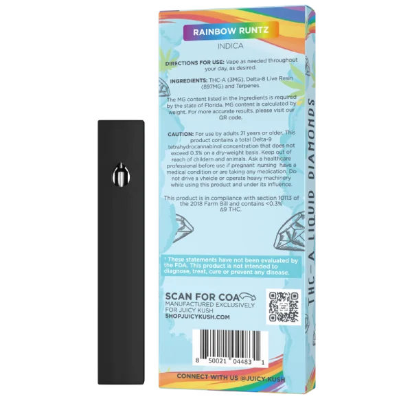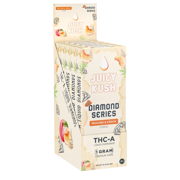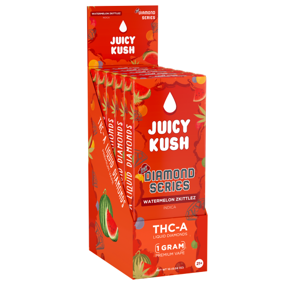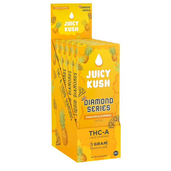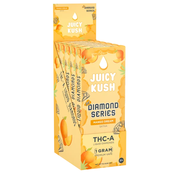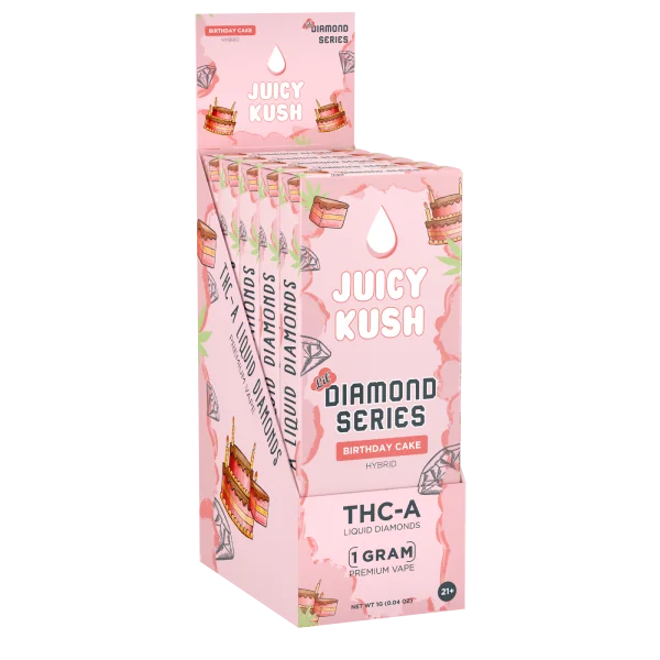 The Juicy Kush Diamond Series is designed with your lifestyle in mind. Prefilled and ready to use, these 5G disposables are perfect for on-the-go enjoyment or as a discreet companion for leisure moments. Their sleek design and powerful delivery system make them a top choice for those seeking quality and convenience.