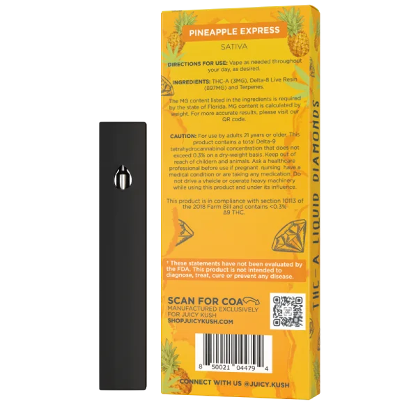 Indulge in the ultimate taste sensation with the Juicy Kush Diamond Series 5G Disposable, now available in an ultraconvenient 1-gram size. Each disposable is a ticket to a world of intense flavors, expertly crafted to satisfy your cravings with every puff. Whether you’re a cannabis connoisseur or new to the scene, these disposables offer an unparalleled flavor experience.