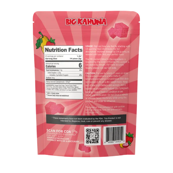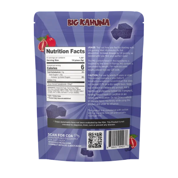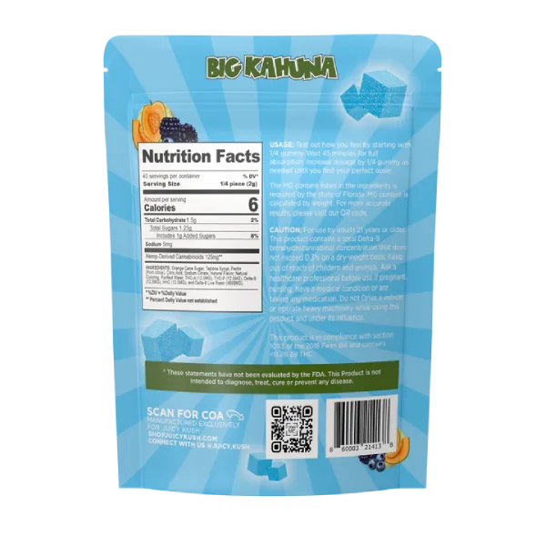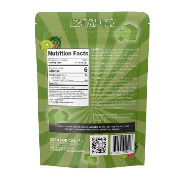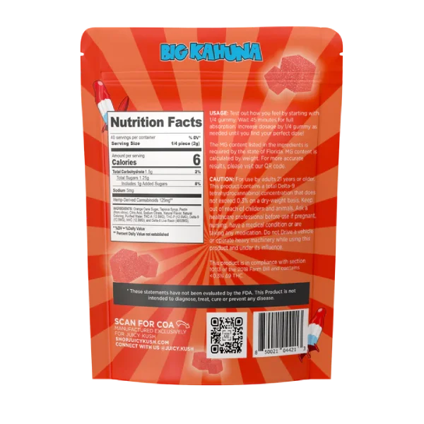 Dive into the intense and flavorful world of Juicy Kush THCA Liquid Diamond Gummies 5000MG. Each gummy delivers an unrivaled punch with 500mg of a premium cannabinoid blend, including THCA, THCP, Delta9, HHC, and Delta8 Live Resin. Our gummies are meticulously crafted to provide a potent and delectable experience, making them a must-try for any enthusiast.